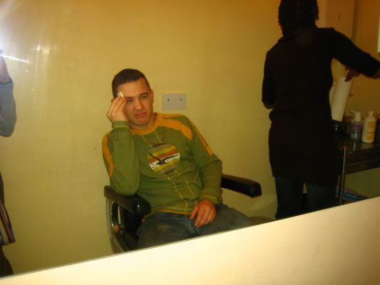 we went to camden town and decided to get piercings. adam pierced his eye brow and i pierced my nossseeeeestril. ehehe awww doesnt he look miserable...