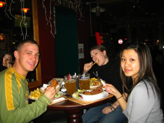 after that we met up with maeve because she came down to london too. we ate some great pub food with our new bloody piercings.