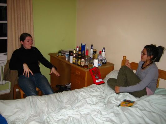 we finally got back to our hostel and decided to have some drinks and crisps. maeve and adam fought over the crisps. maeve likes to start fights! jk